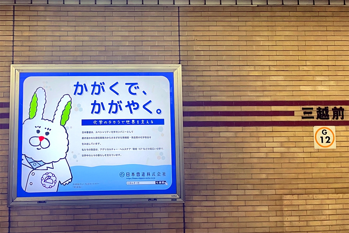 日本曹達が本社を構えるJPタワー前地下広場の柱にも!