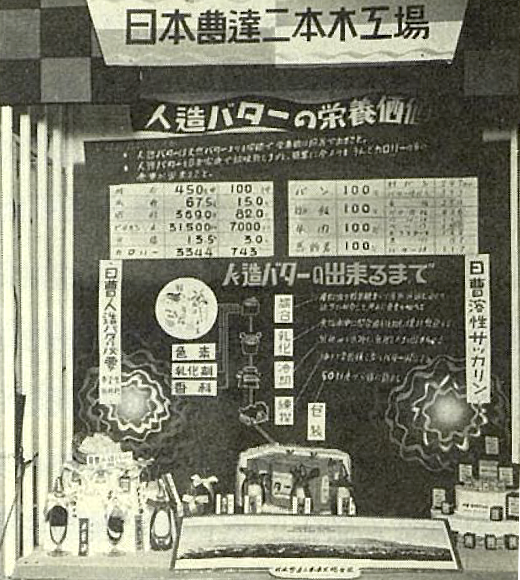 戦後間もないころ、二本木工場で「マーガリン」を生産していました。(当時の名称は「人造バター」!)このほかに石鹸や人工甘味料、燃料、医薬品などさまざまな家庭用品を製造し、深刻な物資不足にあった当時の人々の生活を支えました。